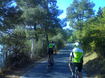 Desde el principio encontramos pendiente, al principio suave, aunque poco después se endurece. La verdad es que nos sorprendió, puesto que la hoja de ruta que llevábamos indicaba que ésta era una ruta suave. Después de haber realizado bastantes de las que vienen en ese libro, debo decir que me pareció más bien de tipo medio. Quizá la clasificaron así por la sensación de que se queda corta en kilómetros porque una vez alcanzado el punto culminante de la ruta, el descenso se hace “en un periquete”.