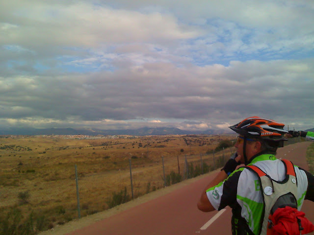 Habíamos quedado para ir hasta Los Santos de la Humosa pero todo quedó en una vuelta por el parque natural de Alcalá de Henares. Todo por culpa de unos mareos que me rondaban (para mí que debido a los "restos" de una gripe reciente) Aún así sudamos de lo lindo en el parque y nos "chupamos" como 44 kilómetros.